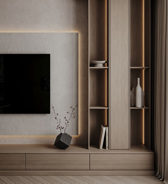 Мы специализируемся на производстве корпусной мебели, кухонь, шкафов, гардеробных, ТВ-панелей,